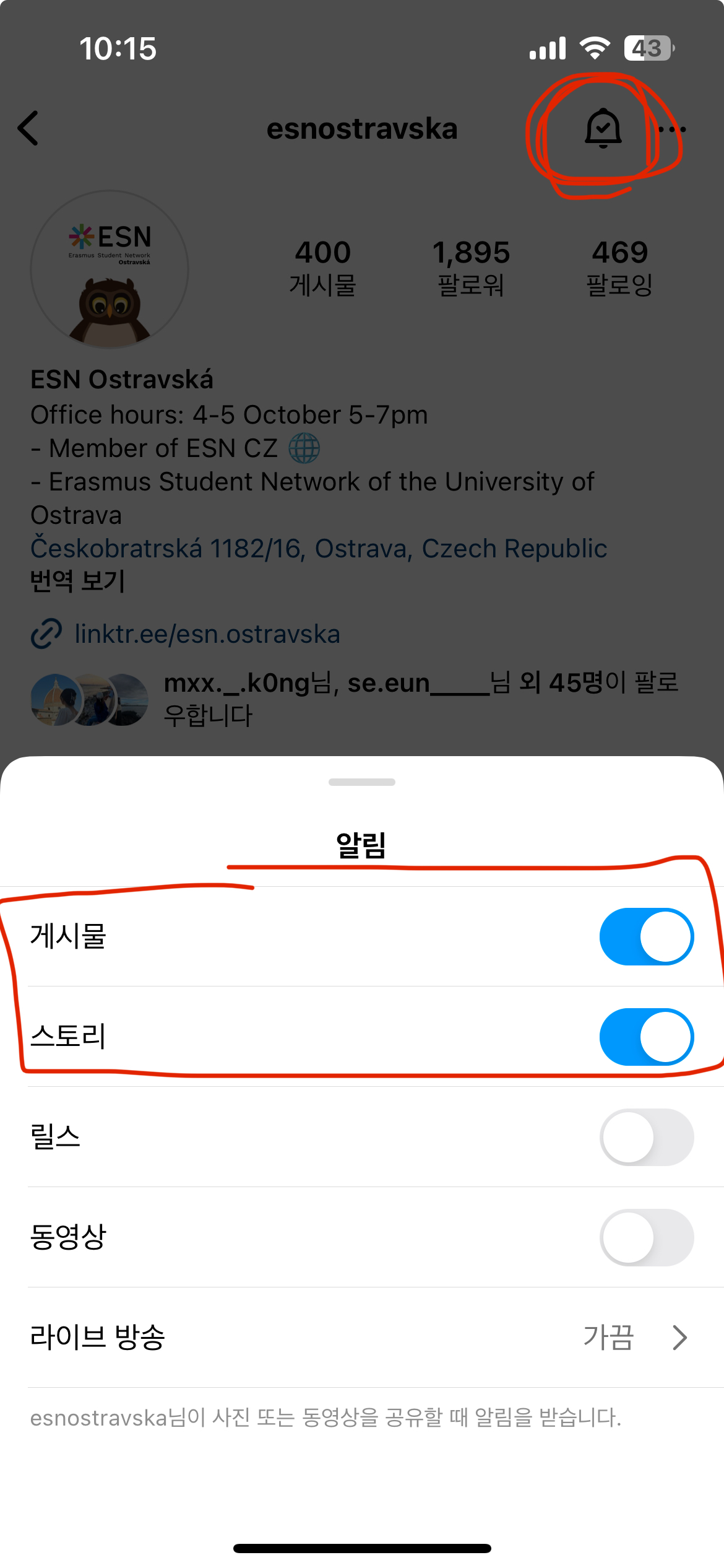 오스트라바대학, 오스트라바공대대학은 따로 ESN 인스타그램을 운영한다.