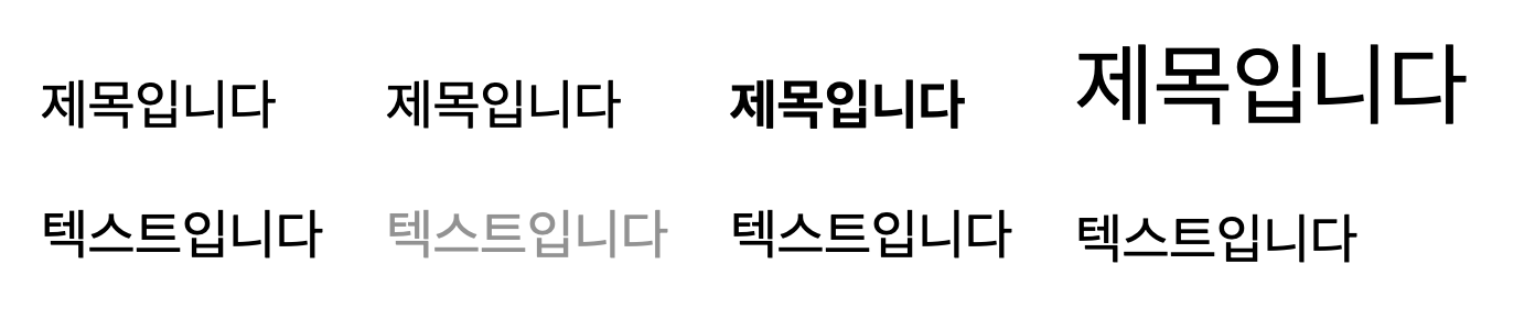 -> 하단의 이미지를 보면 같은 내용을 작성한 텍스트이더라도, 폰트와 색상을 다르게 했을 때 제목이 강조되는 것을 확인할 수 있다. 간단한 예시를 통해 나타냈지만, UI를 만들 때, 이런 하나하나의 요소들의 디테일들이 합쳐져서 전달하고자 하는 의미가 분명하게 전달이 된다.