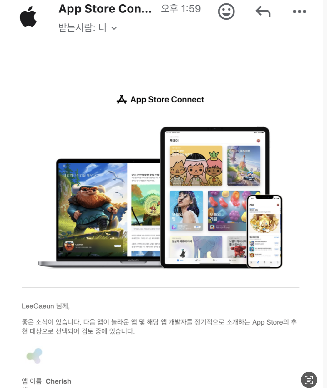 2️⃣ Cherish < 지금 주목해야 할 앱 > 선정 + 오늘의 앱.. 컨텍 연락 옴 !
