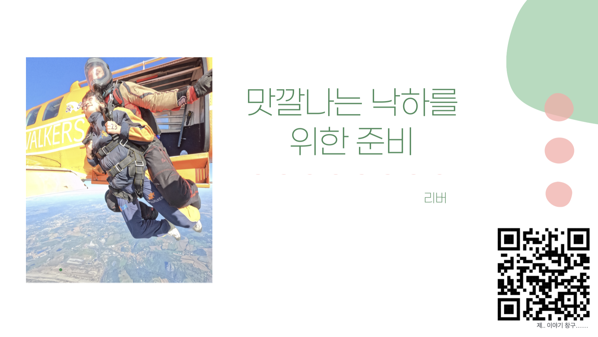 포항에 온지 1주일 만에 갑자기 TOD를 준비해라구 해서 당황하기도 했고, 미루고 싶다고 의사를 이야기하기도 했지만,, 오히려 TOD를 준비하면서 정리가 되는 게 많았고, 앞으로 가야할 길의 갈피가 생기기도 했던 것 같다. 좋은 시간 제안해주셔서 감사합니다 ㅎㅎ