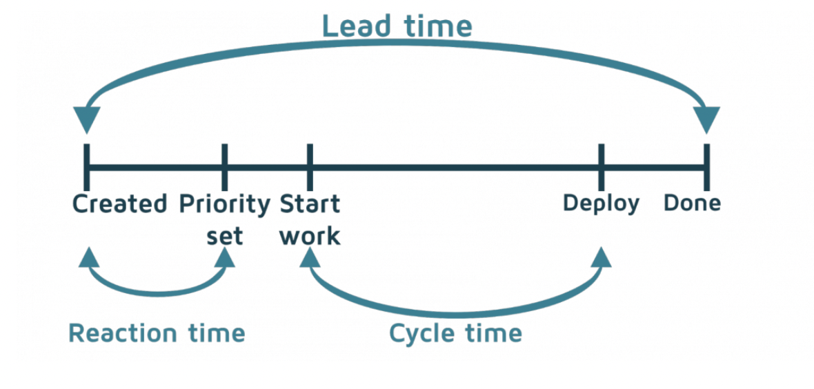 팀에서 해결해야 하는 문제들을 나열하고 의논하고, 코드를 작성해서 사용자에게 배포를 하는 모든 과정을 의미하기 때문에 lead time은 실질적으로 팀이 프로젝트를 수행하는데에 걸리는 시간의 총량이다.
