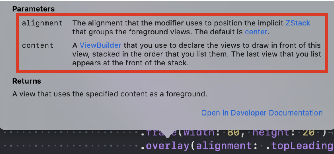 해당 내용을 보면 VStack과 비슷하면서도 다른 overlay의 특징을 알 수 있다.