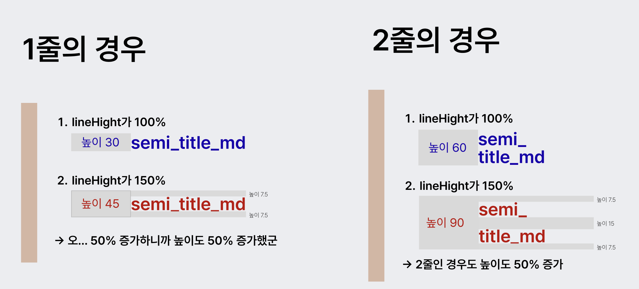 ⚠️ 사실 실제로 값을 print 해보니까, 피그마에서 font 높이를 쟀던 거랑 1-2px 정도 차이가 나긴 했는데, 어쨌든 똑같은 배수로 늘여주면 된다는 생각에 keep going 했다. -> 이에 대해서 잘 아시는 분 있으면 공유 부탁드립니다...