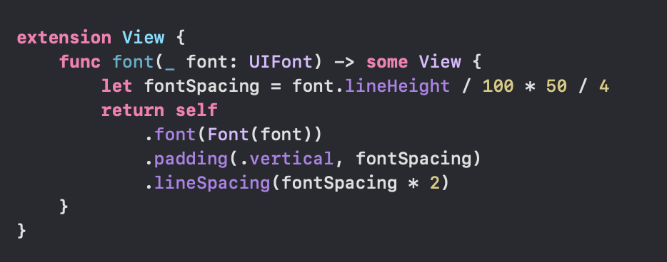근데,,, 이게 왜 문제가 되냐면, SwiftUI에서는 LineHeight을 제공해주지 않기 때문이다.